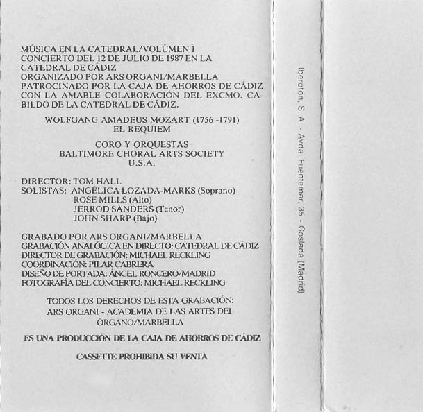 Concierto del 12 de julio de 1987 celebrado en la Santa y Apostólica Iglesia Catedral de la Santa Cruz de Cádiz
