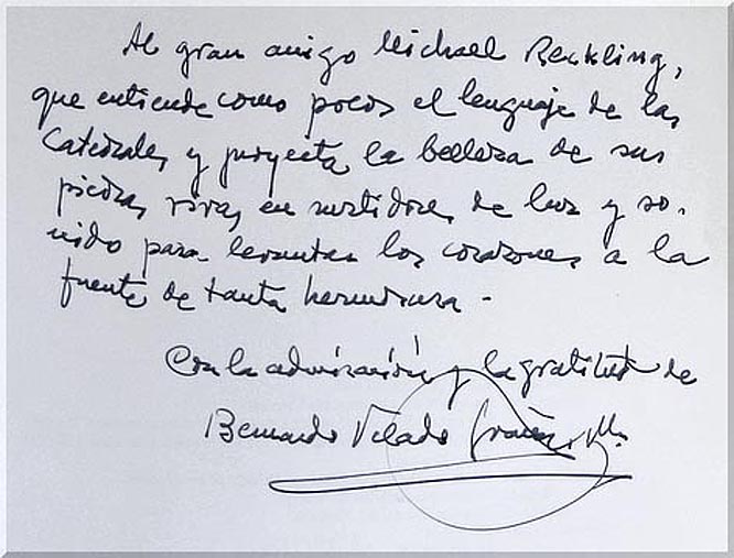 Dedicatoria del Rvdo. Padre Bernardo Velado Graña