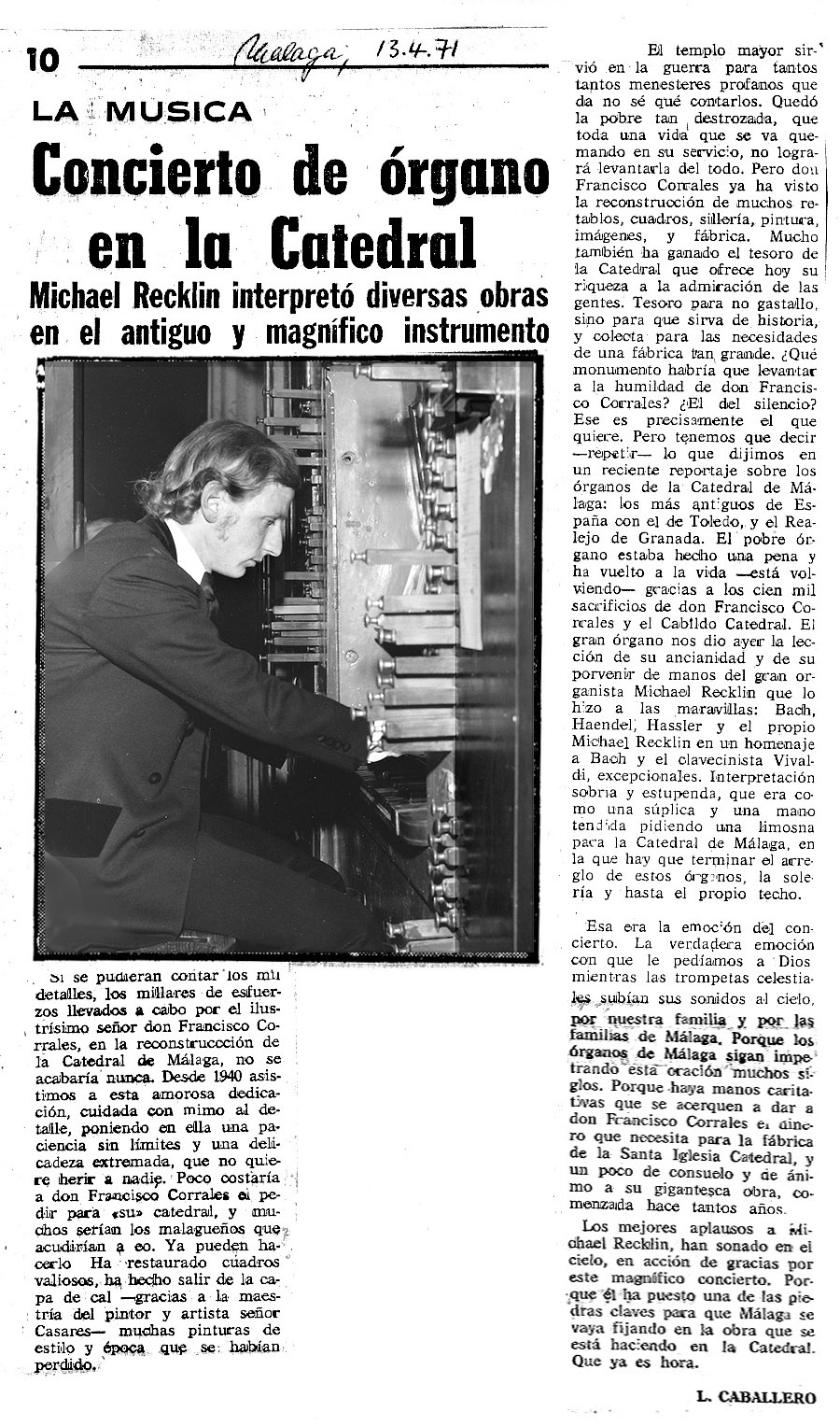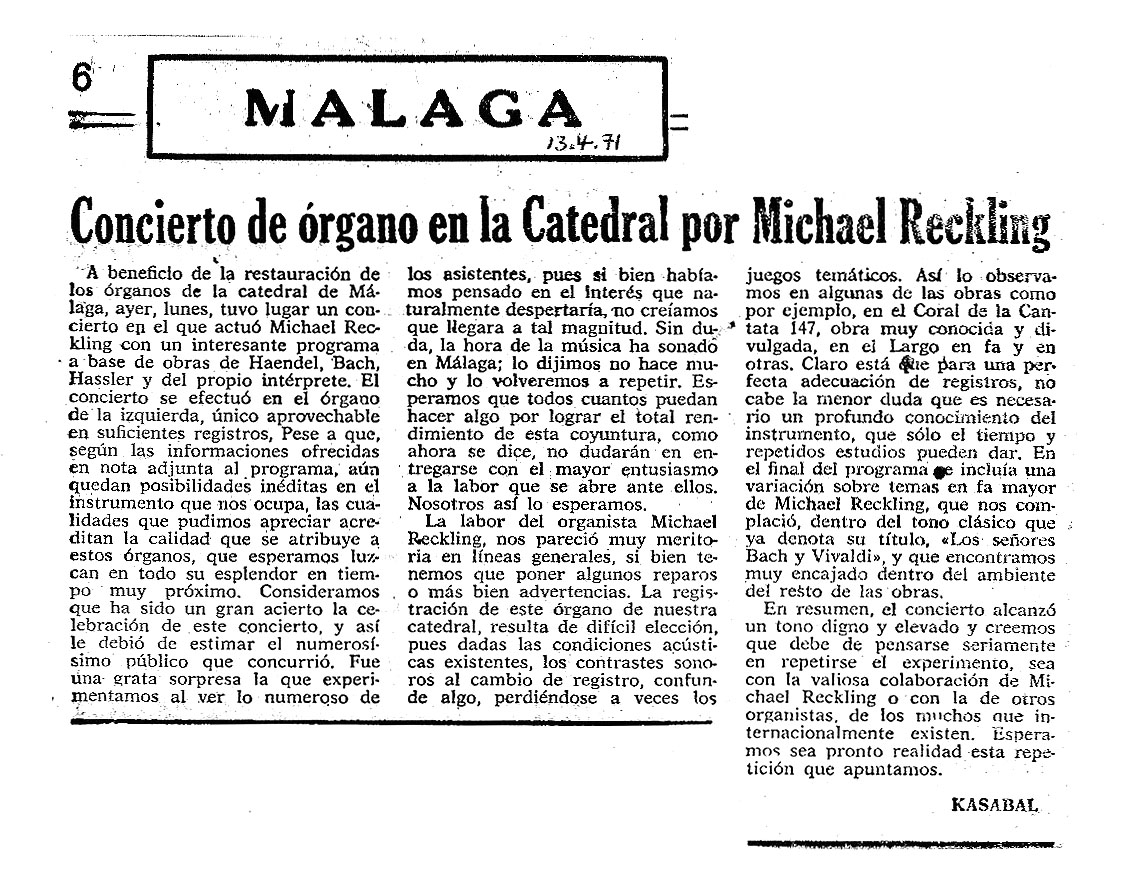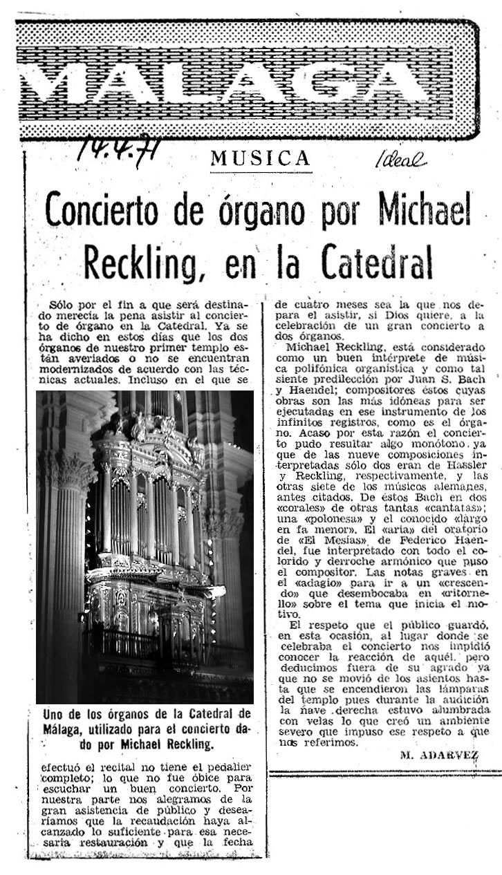El 29 de diciembre de 1971, seis meses más tarde del último concierto de órgano en la Catedral de Málaga,