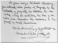 ha escrito esta preciosa dedicatoría en el diarío de Michael Reckling.