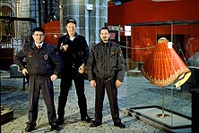 Michael Reckling por la noche con los vigilantes de seguridad.