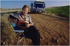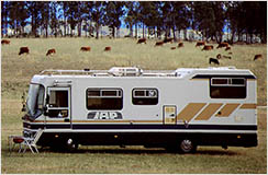 La gran autocaravana perteneciente a la empresa de Michael Reckling,